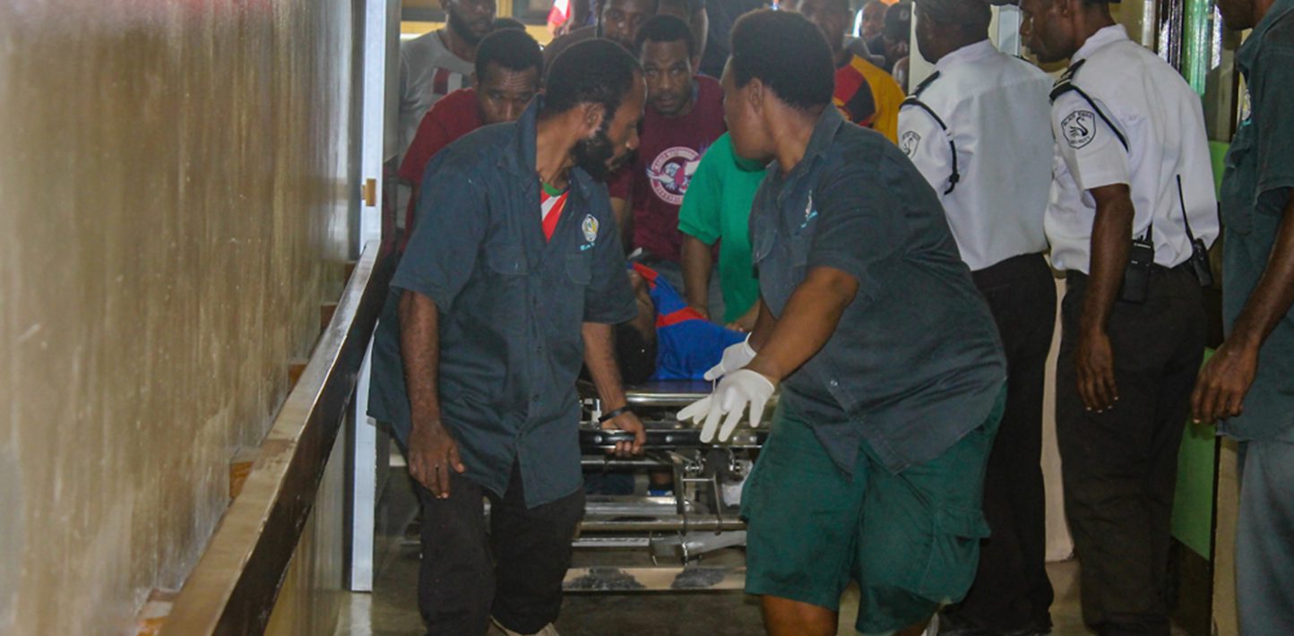 Outside Papua New Guinea General Hospital, families and friends of students who were attacked were peacefully protesting the shootings. Hospital officials have said that they heard shooting outside the hospital.